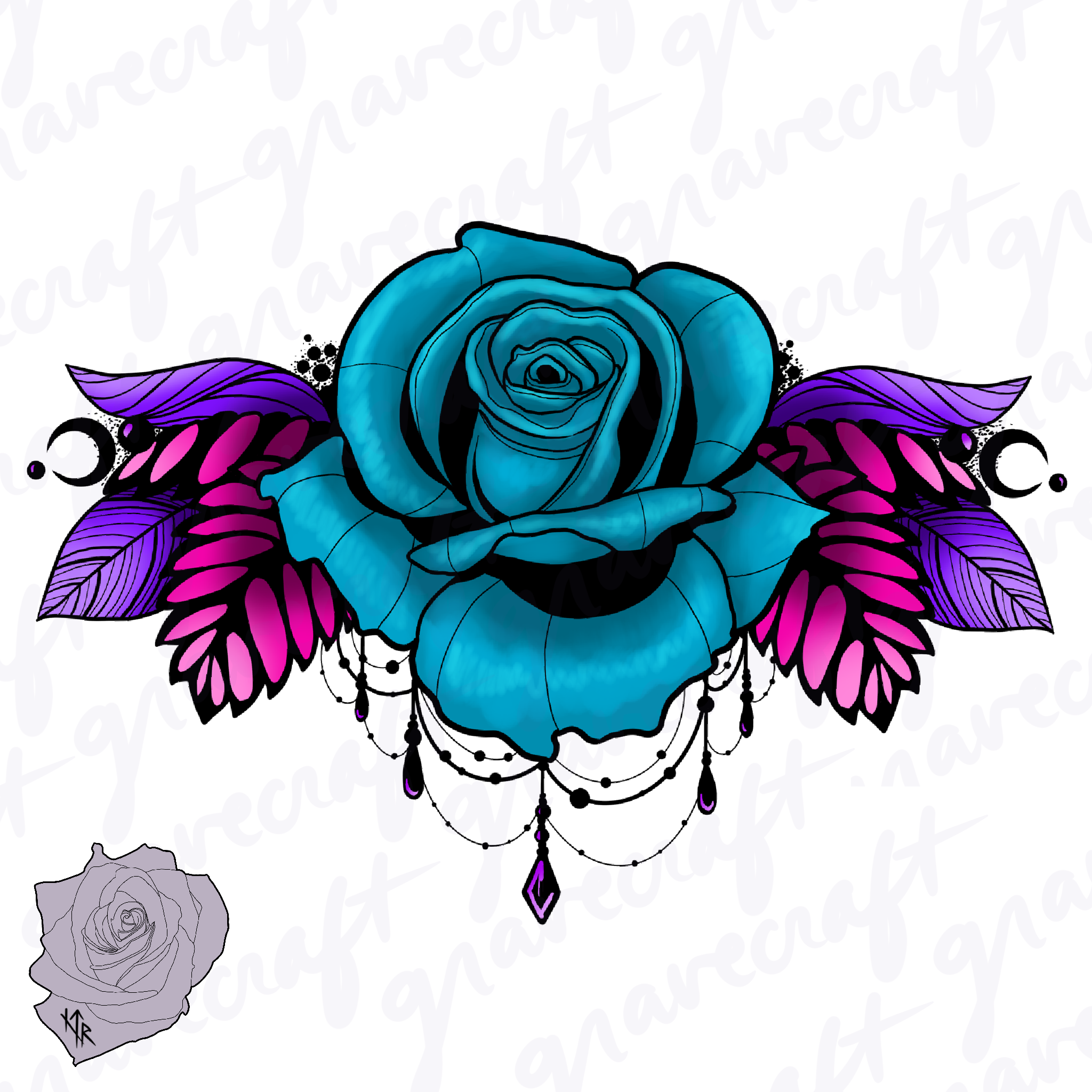 Most of my pre-drawn designs can be done in black/grey and/or colour. For designs that are already in colour, I am generally open to customizing those colours to suit your preference. Sizes are generally customizable, but please note some pieces may have minimum sizes due to the amount of detail in the tattoo.